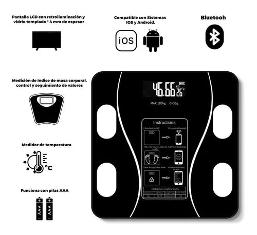 Balanza Digital Inteligente – Bluetooth 180 Kg Con Análisis Corporal Y App